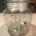 New for 2021, Glass canister. 47 oz. Measures approx.: 5- 5/8" in diameter by 7" h, and the opening is 3- 9/16" diameter. Has rubber seal and glass lid. Perfect to display your holiday candy or to give someone with a few handmade goodies inside.